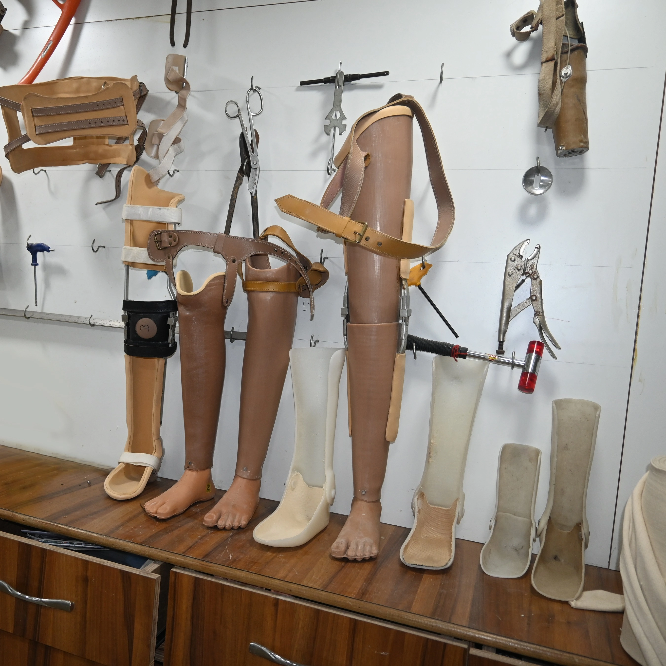 The above-knee prosthesis is also indigenously designed and fabricated from high-quality, high-density polyethylene (HDPE) pipes. The sockets used are of both ischial bearing and ischial containment types.