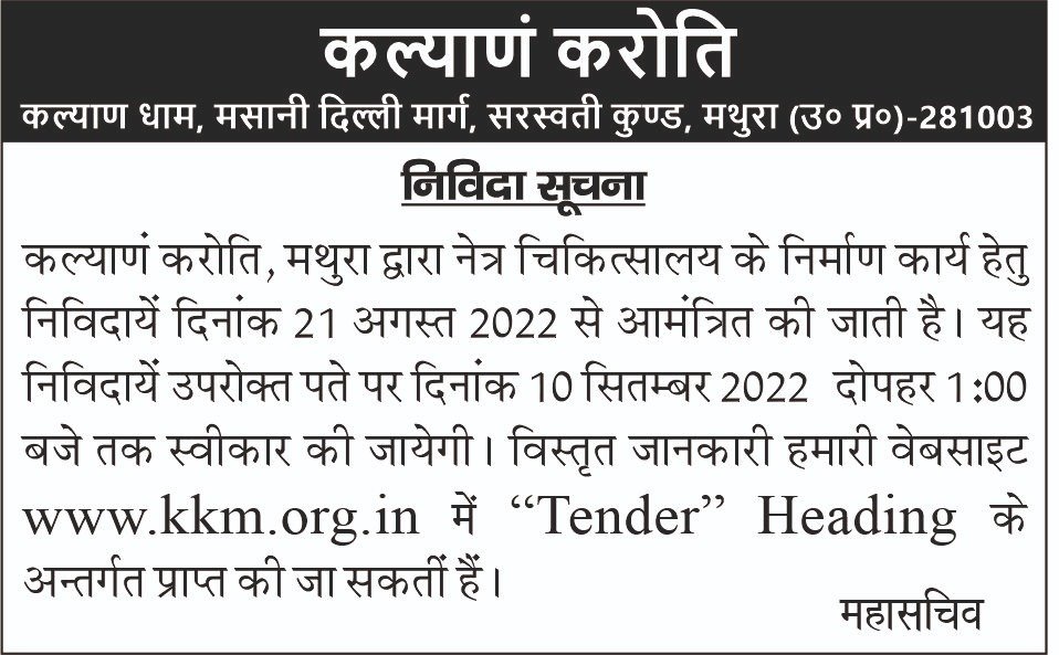 Tender is called for the construction of a Eye Hospital from dated 21.08.2022. Tender application will be accepted till 10.09.2022, afternoon 1:00 pm.